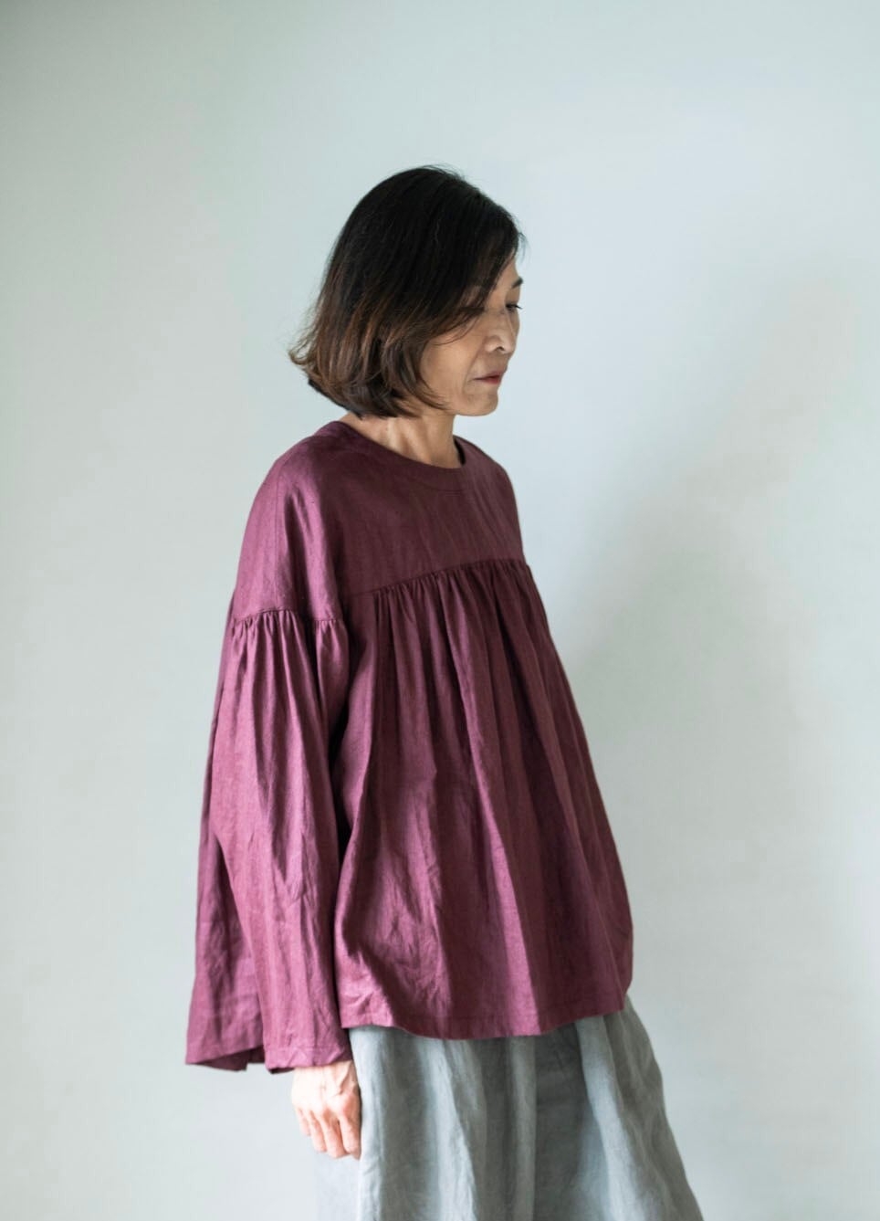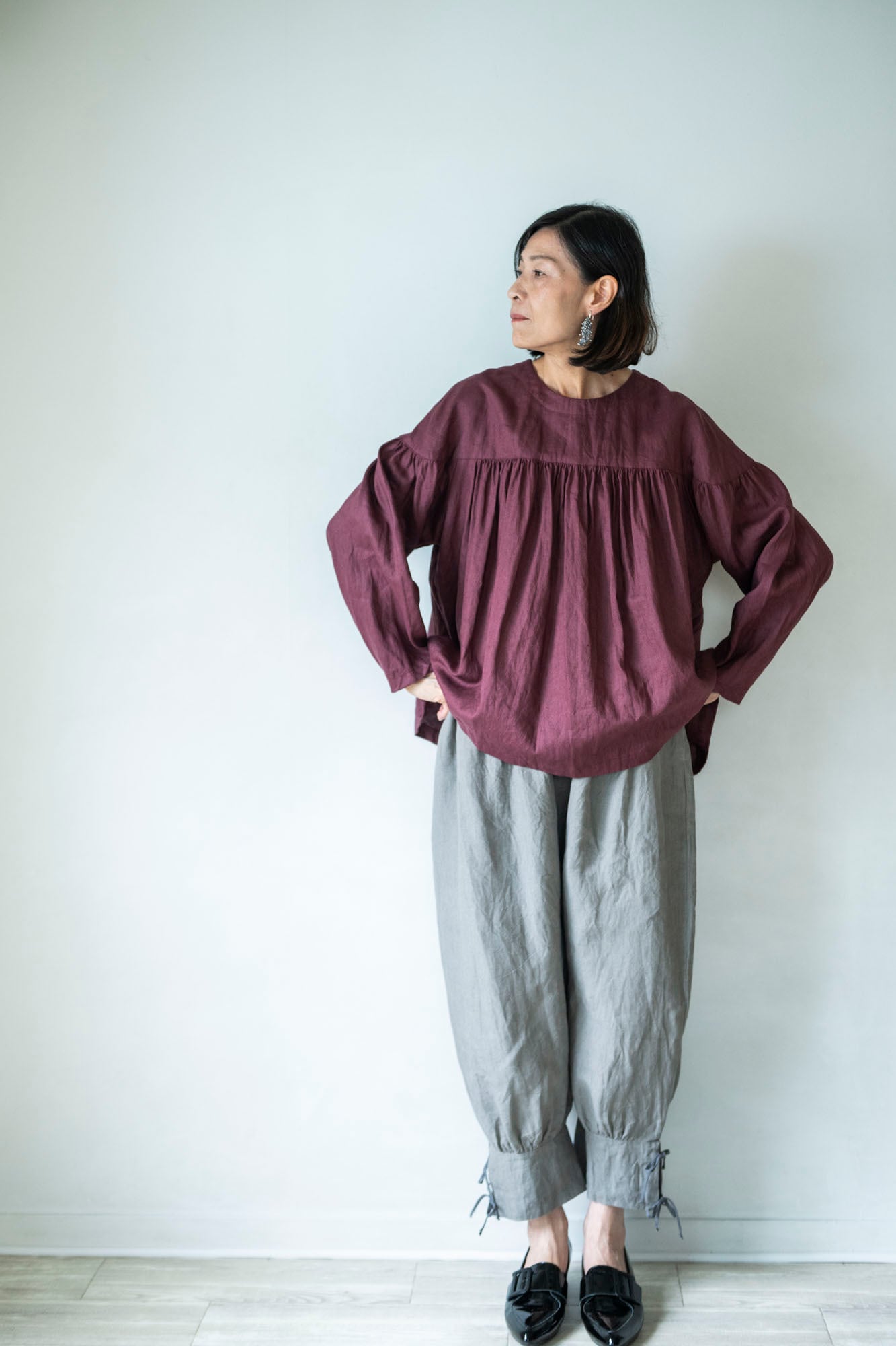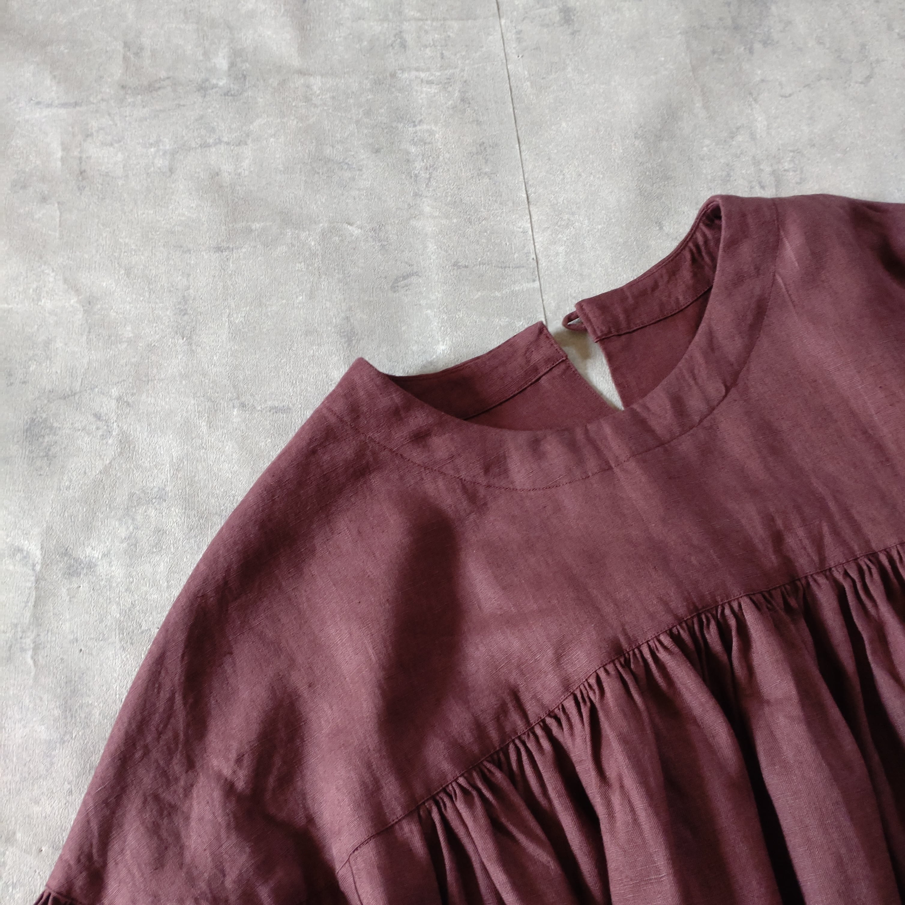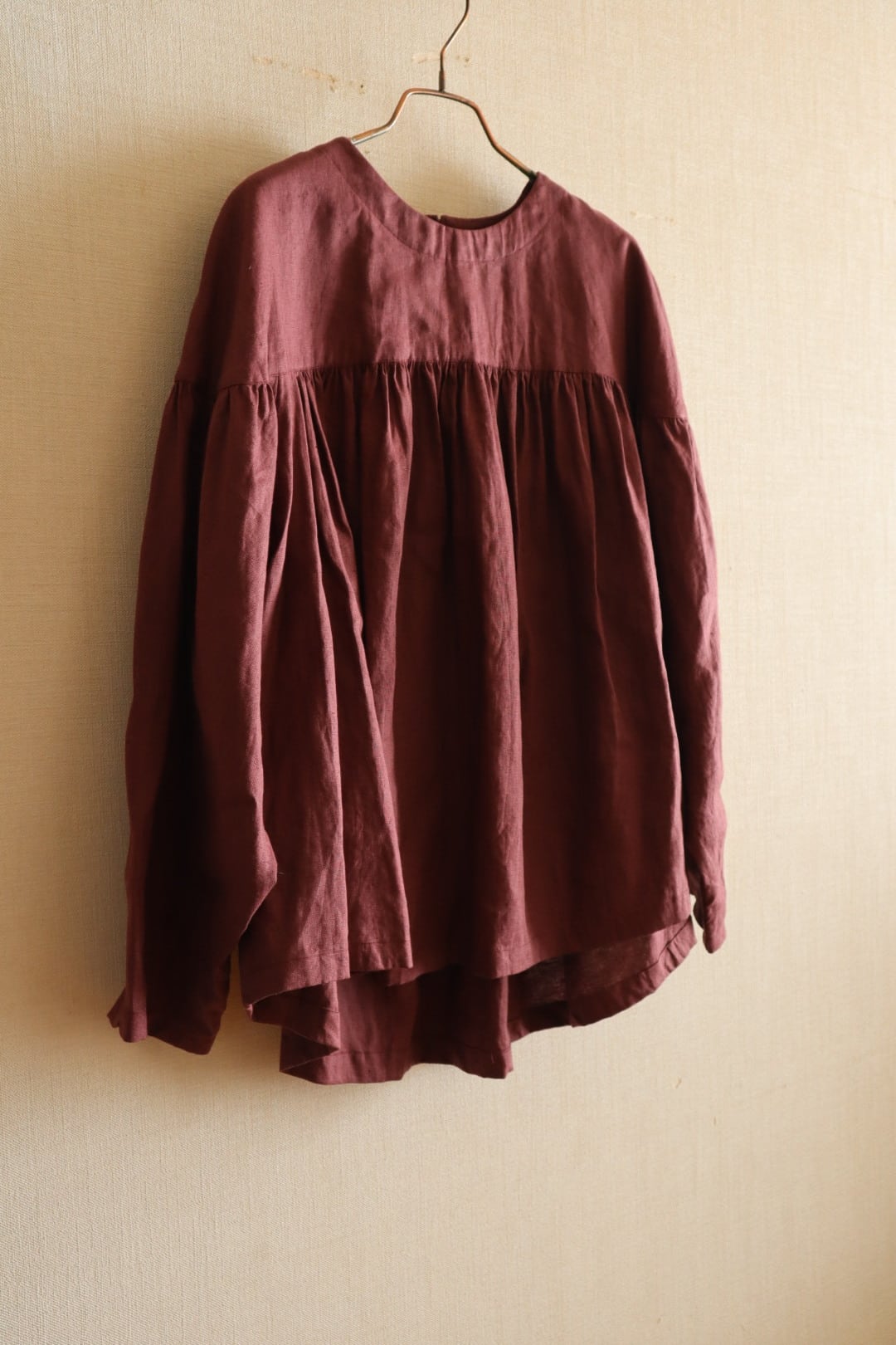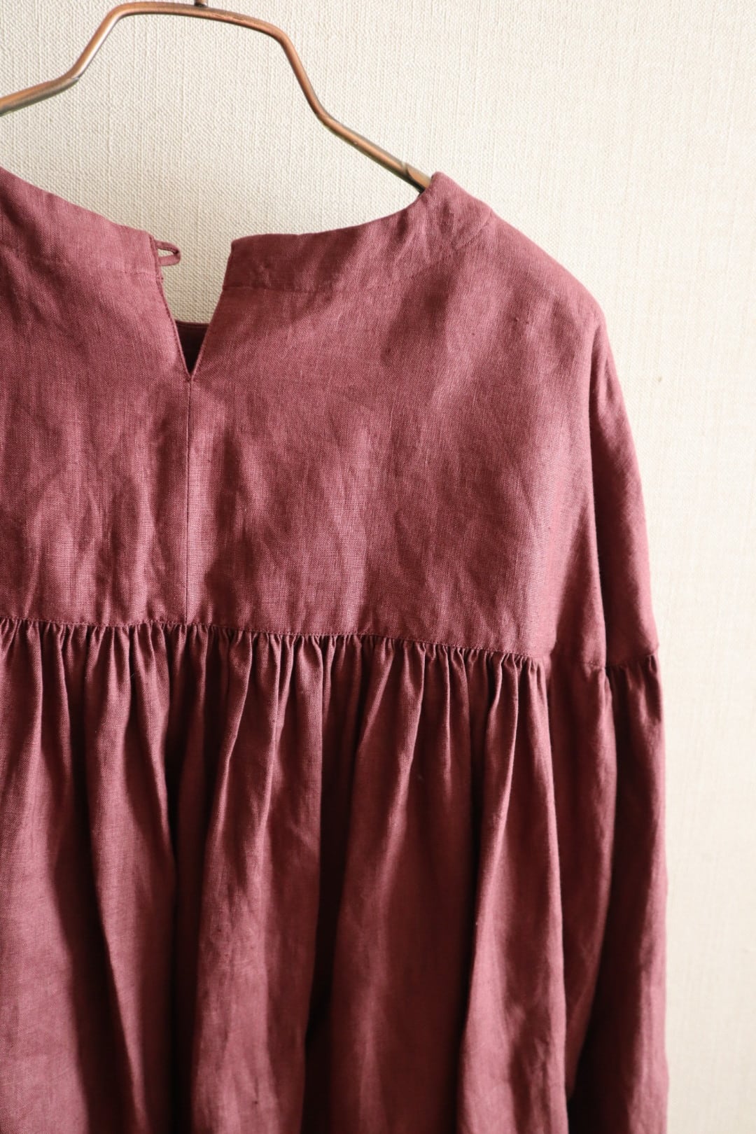 ナチュラルワッシャー加工 ピュアリネン40番 アンティークボルドー